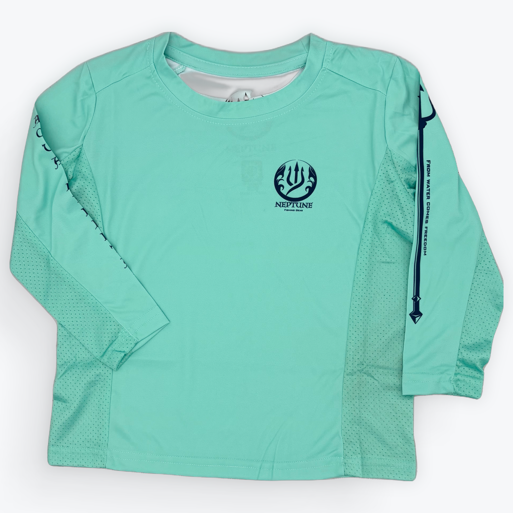 Introducing our Kids Long Sleeve Performance Fishing Shirt - This shirt matches our Adult shirts - They are the ultimate apparel for those beginning anglers and those living in warm climates who demand nothing less than the best. Made from a super soft and stretchy fabric blend, this shirt offers unmatched comfort and flexibility that you will never want to take it off. but when you do you won't hurt your little onnes ears when trying to get it off. Our Long Sleeve Performance Fishing Shirt also offers large mesh side panels that extend from the underarm down the sides AND down to the wrist to let the air flow through, keeping you cool and letting your skin breathe for all-day wear. It's also moisture-wicking and fast-drying, ensuring you stay cool and dry even during the hottest and sweatiest fishing sessions and warmest days. With UPF 50 protection, you can rest assured that you're protected from harmful UV rays. Proudly designed by an American company, this fishing shirt is a must-have for those newly aspiring anglers and everyone who enjoys being outside, no matter how hot it gets.
